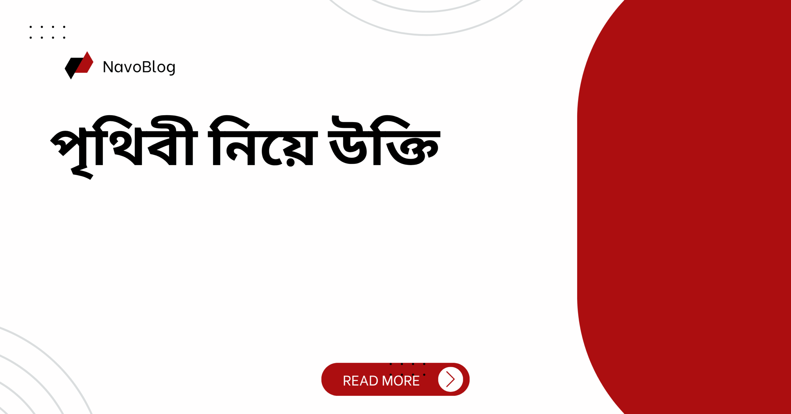 পৃথিবী নিয়ে উক্তি আমাদের মনে করিয়ে দেয়, পৃথিবী আমাদের একমাত্র বাসস্থান, যা আমাদের সবার সম্মিলিত যত্নের দাবিদার। এই পৃথিবী নিয়ে উক্তিগুলো আমাদের শুধুমাত্র প্রকৃতির সৌন্দর্য বোঝায় না, বরং আমাদের সামাজিক, নৈতিক ও আত্মিক দায়িত্বের কথাও স্মরণ করিয়ে দেয়। পৃথিবী নিয়ে উক্তি পাঠ করলে আমরা বুঝতে পারি, পৃথিবী রক্ষা না করলে মানুষের ভবিষ্যতও সুরক্ষিত নয়।