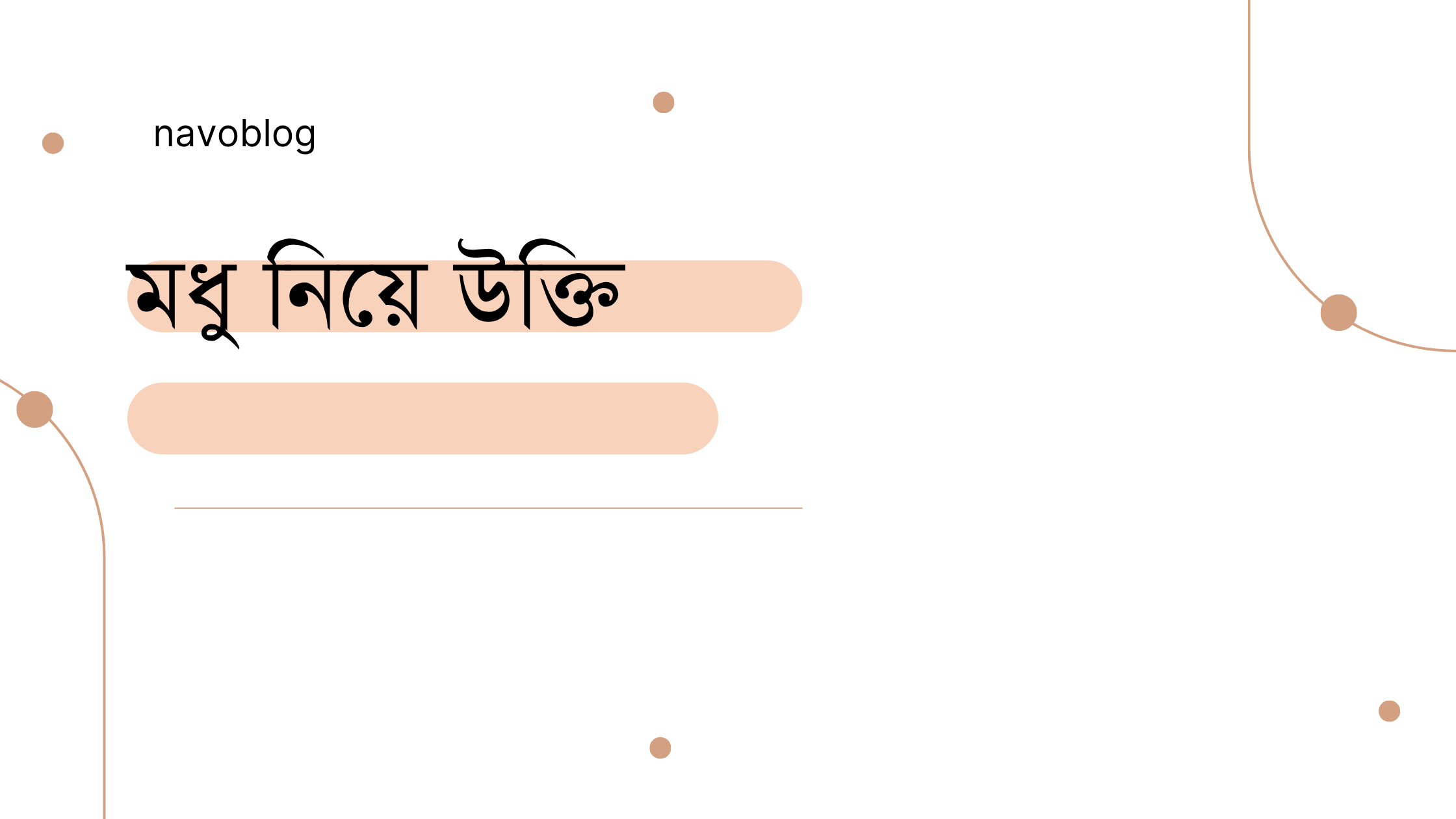 মধু নিয়ে উক্তি আমাদের জীবনকে আনন্দময়, প্রশান্তি এবং সুখী করে তোলে। প্রতিদিন এই উক্তিগুলো মেনে চললে ব্যক্তি এবং সমাজ উভয়ই মধুমাখা জীবন উপভোগ করতে পারে। জীবনকে মিষ্টি এবং সুন্দর করে তোলার জন্য মধু নিয়ে উক্তি একটি অনন্য দিকনির্দেশ।