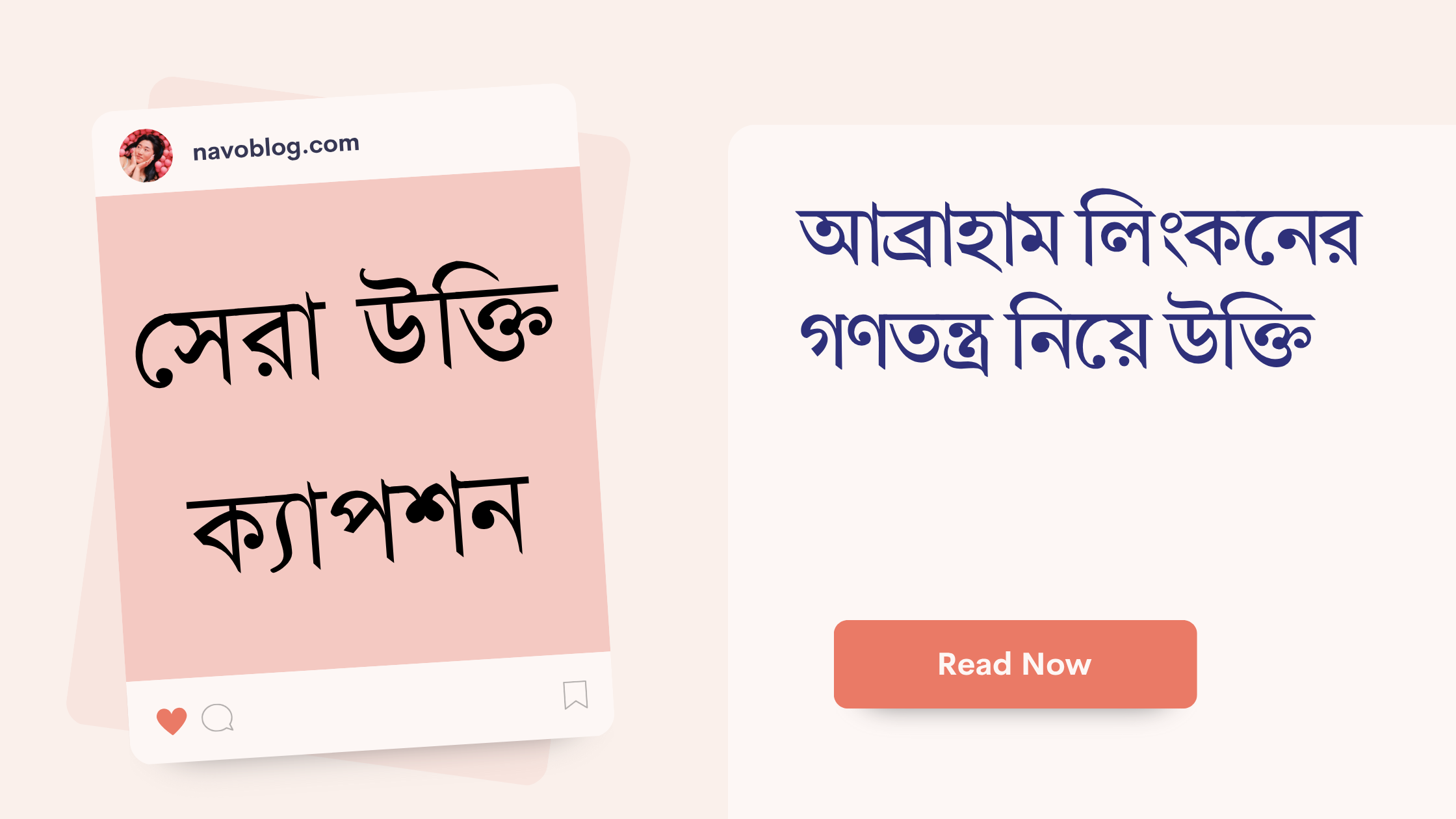 তাহলে দেখে নেয়া যাক বাছাইকৃত সেরা আব্রাহাম লিংকনের গণতন্ত্র নিয়ে উক্তি, যা ফেসবুক ক্যাপশন কিংবা নিজের জীবন গড়ায় বিশেষ সহযোগিতা করবে।