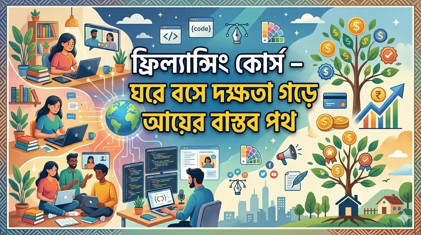 ফ্রিল্যান্সিং কোর্স বর্তমান সময়ে তরুণদের কাছে শুধু একটি শেখার বিষয় নয়, বরং নিজের ক্যারিয়ার গড়ার একটি শক্ত ভিত্তি। ফ্রিল্যান্সিং কোর্স বেছে নেওয়ার আগে আমাদের অনেকের মনেই প্রশ্ন থাকে—এটা কি সত্যিই কাজের, ঘরে বসে কি বাস্তব আয় সম্ভব, আর কোন কোর্সটা আমার জন্য ঠিক হবে। এই আর্টিকেলে আপনি ফ্রিল্যান্সিং শেখার বাস্তব চিত্র, কোর্স নির্বাচন থেকে শুরু করে ফ্রি ও পেইড অপশন, অনলাইন প্ল্যাটফর্ম এবং বাংলাদেশ প্রেক্ষাপটে আপডেটেড তথ্য এক জায়গায় পাবেন। তাই শেষ পর্যন্ত পড়লে আপনার বিভ্রান্তি অনেকটাই দূর হবে।