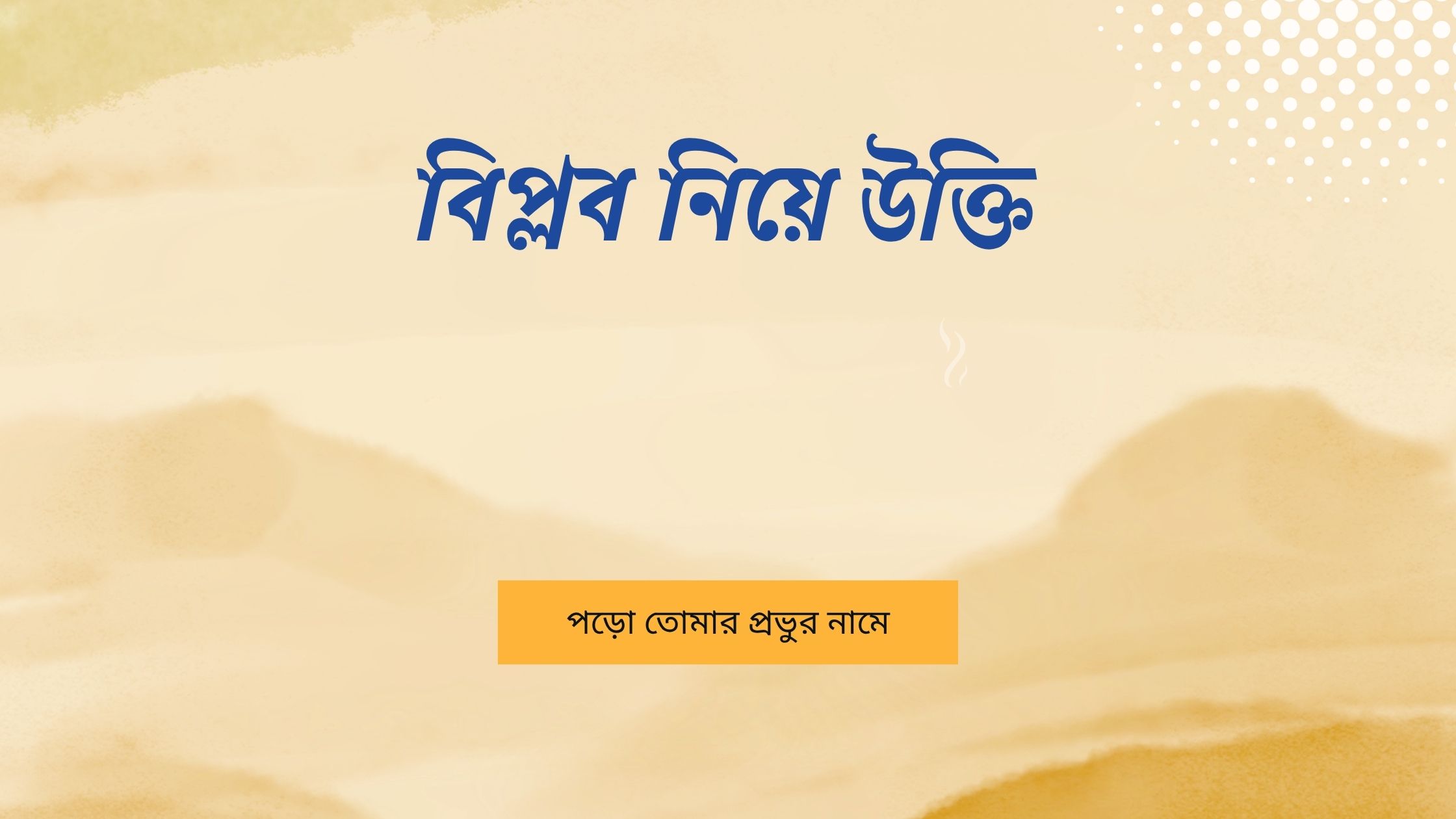 প্রতিদিনের জীবনে বিপ্লব নিয়ে উক্তি আমাদের অনুপ্রাণিত করে নতুন উদ্দীপনা এবং লক্ষ্য নির্ধারণে। বিপ্লব নিয়ে উক্তি আমাদের শেখায় কিভাবে অদম্য মনোবল এবং সাহসের মাধ্যমে বাধা অতিক্রম করা যায়। বিপ্লব নিয়ে উক্তি আমাদের মনে করিয়ে দেয় যে বড় পরিবর্তন আসে ধৈর্য্য, সংকল্প এবং সঠিক দৃষ্টিভঙ্গির মাধ্যমে।