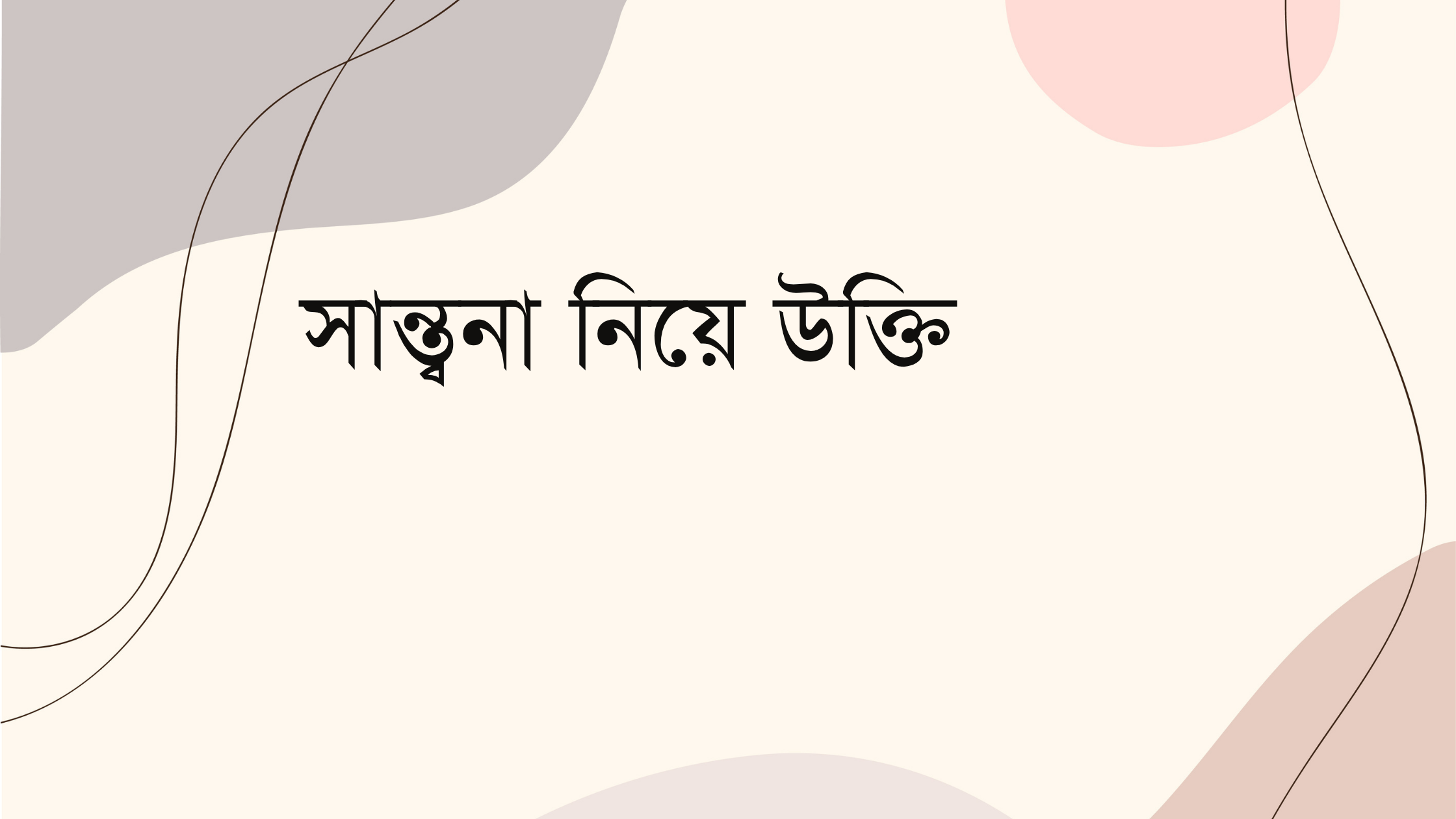 সান্ত্বনা নিয়ে উক্তি আমাদের জীবনের কষ্টময় মুহূর্তগুলোতে আশার আলো জোগায়। সান্ত্বনা নিয়ে উক্তি শুধু মানসিক প্রশান্তি দেয় না, বরং আমাদের শেখায় কীভাবে দুঃখ এবং ব্যথাকে সামলে জীবনে এগিয়ে যাওয়া যায়। সান্ত্বনা নিয়ে উক্তি আমাদের মনে করিয়ে দেয় যে কঠিন সময়ও অস্থায়ী এবং ধৈর্য এবং ইতিবাচক চিন্তাধারা সবসময় ফলপ্রসূ হয়।