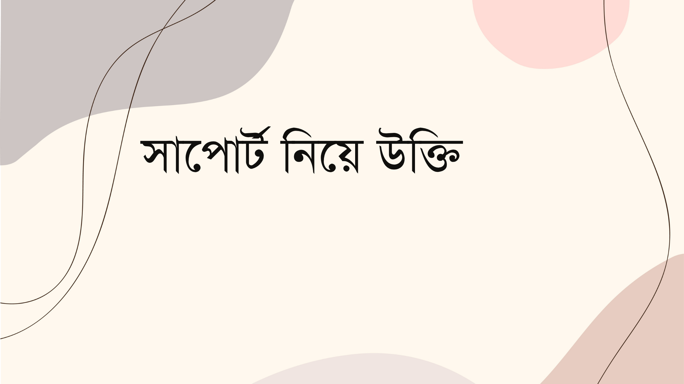 সাপোর্ট নিয়ে উক্তি আমাদের শেখায় কিভাবে অন্যকে সাহায্য করা যায়, সম্পর্ককে শক্তিশালী করা যায় এবং জীবনের প্রতিটি মুহূর্তকে সুন্দরভাবে উপভোগ করা যায়। সাপোর্ট মানুষকে শক্তি, স্থায়িত্ব এবং ধৈর্য্য দেয়।